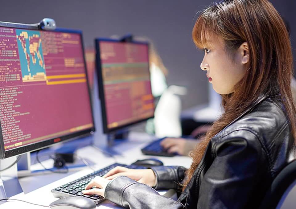 本学園はホワイトハッカーを認定するグローバル資格CEH(認定ホワイトハッカー)の国内唯一の認定校です。悪意ある攻撃者からデータやネット環境を守る技術と知識をしっかり身に付けることができます。