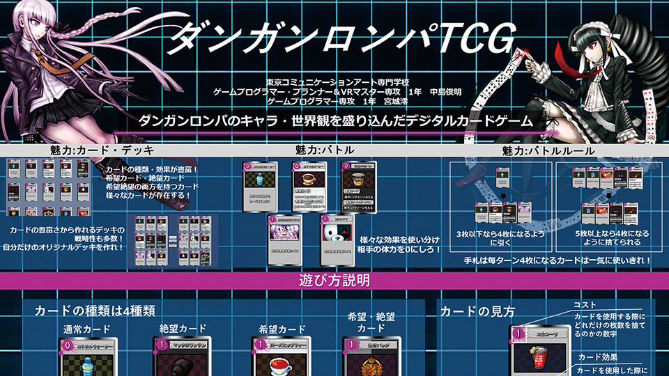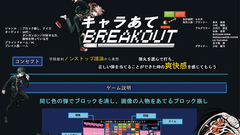 実際のゲームがどのように作られているのかの工程を学習する。仕様書(ゲームの設計図)などについても習得をする。