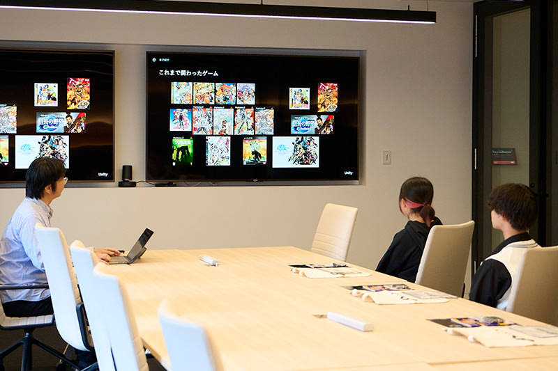 グループ校が幕張メッセに集う「JIKEICOMGame&e-SportsSHOW」に出品し、来場者に未知の感覚を味わってもらいました。現実世界に突如現れた窓。その先には未知の仮想世界が広がり、手を伸ばすとその世界に触れることができる。そして、待ち受ける未来の脅威をその手で解決していきます。身体を動かすだけで直感的にプレイできるこのゲームでは、ゲームプランナーやゲームプログラマーだけでなく、グラフィックやイラストレーション、キャラクターデザインなどの専門スキルも必要とされ、チームメンバーそれぞれが得意分野の知識を持ち寄り、高度に連携させながら、統合的なシステムを構築していきました。イベント当日は、日本マイクロソフト株式会社の中でも特にゲーム分野に深い見識を持つ技術統括室の千葉慎二さんがブースを訪れ、未知の感覚を確かめるように、この新しいアクションゲームを楽しみました。